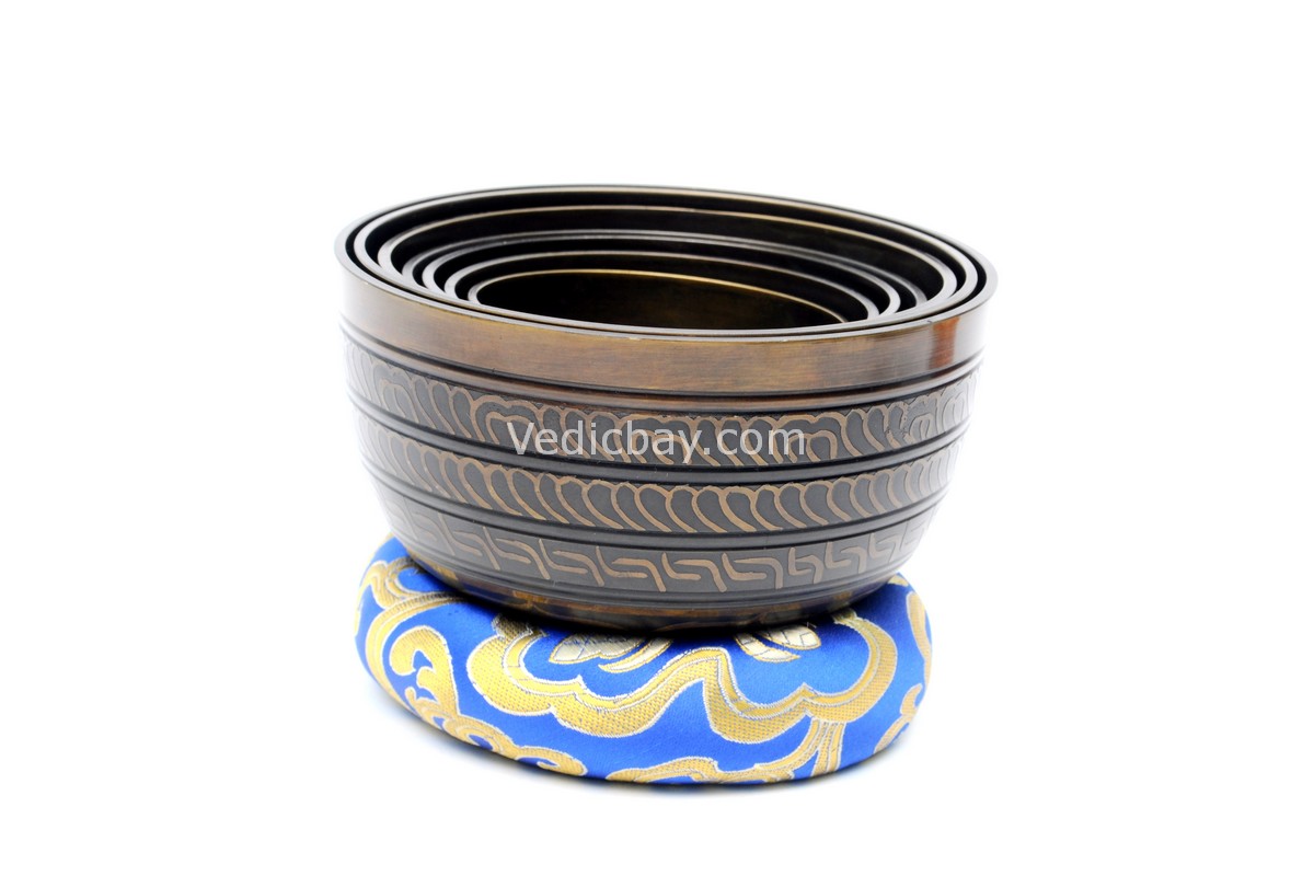 - 7 × Antique finish handmade singing bowls (2.54 – 5.5 inches)