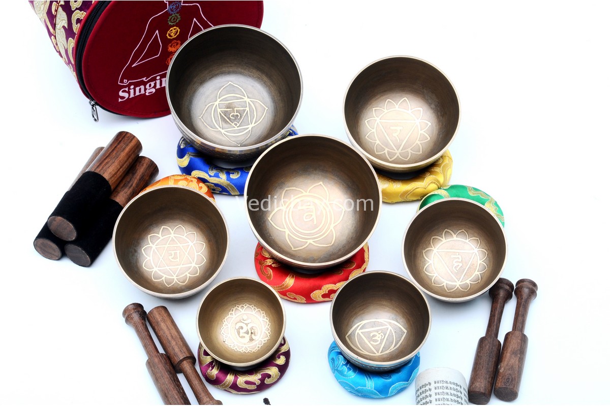 ⚠ Note: This is not a chakra tuned set. The bowls have chakra symbols engraved but are not tuned to specific chakra notes.