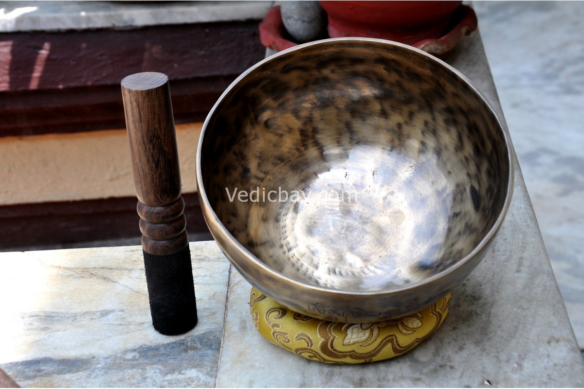 Large Foot Engraved Singing Bowl – Fire & Tibetan Mantra – Vajra Symbol