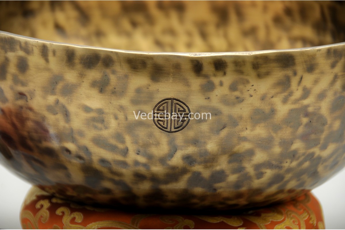 Extra Large Handmade Singing Bowl – Buddha Foot Center – Mantra Etched with Eight Auspicious Symbols – Master Standing Healing Bowl