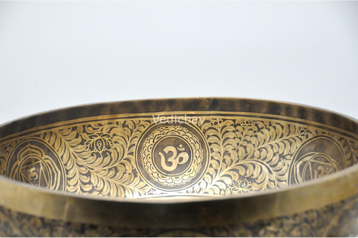 Large Chakra Yogi Singing Bowl – Om & Mantra Etched – Handmade Sound Healing Bowl from Nepal