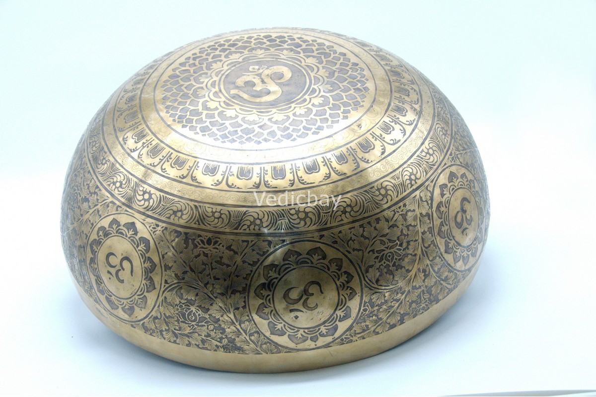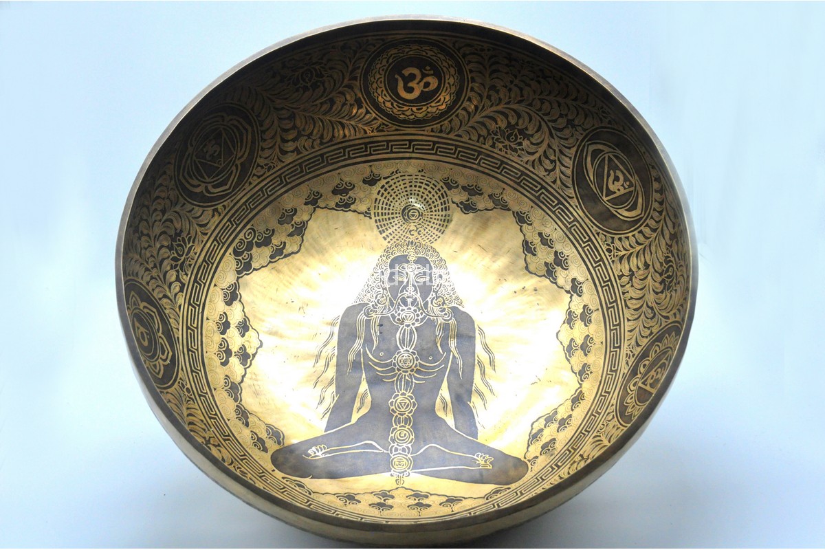 Large Chakra Yogi Singing Bowl – Om & Mantra Etched Sound Healing Bowl – Handmade in Nepal
