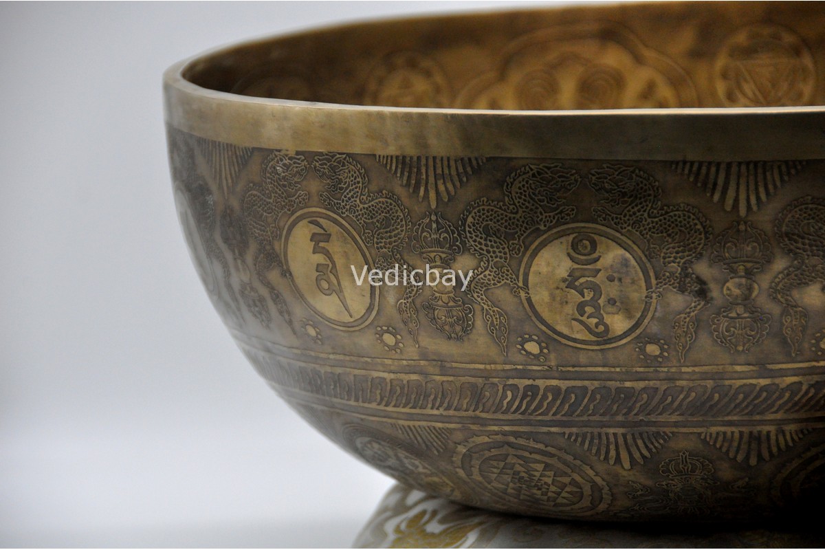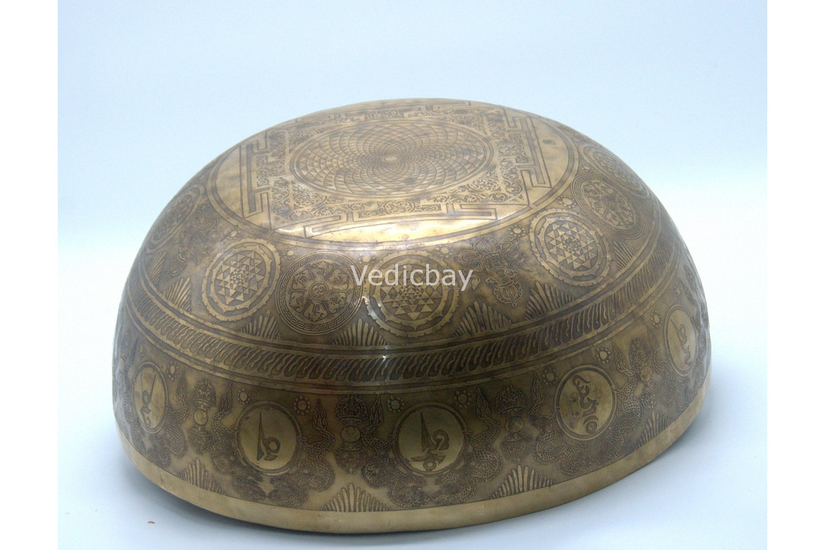 Large Chakra Yogi Singing Bowl – Om & Mantra Etched Sound Healing Bowl – Handmade in Nepal