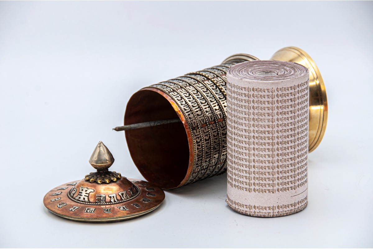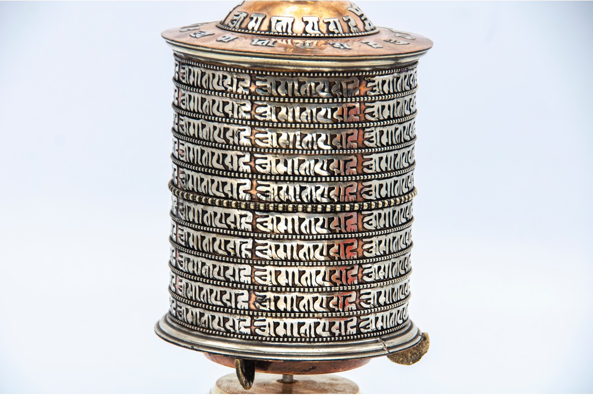 Inside the prayer wheel, a tightly rolled scroll contains thousands of written mantras. When the wheel is turned clockwise with intention, it is believed to release these prayers into the universe—just as if they were spoken aloud. The practice not only cultivates mindfulness and compassion but also accumulates spiritual merit.