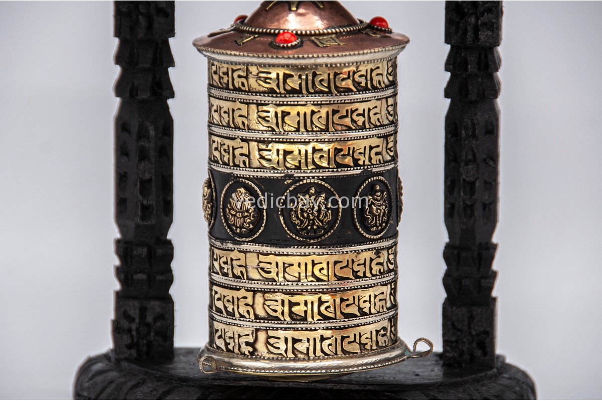 - Mantra: Om Mani Padme Hum (on wheel and scroll)